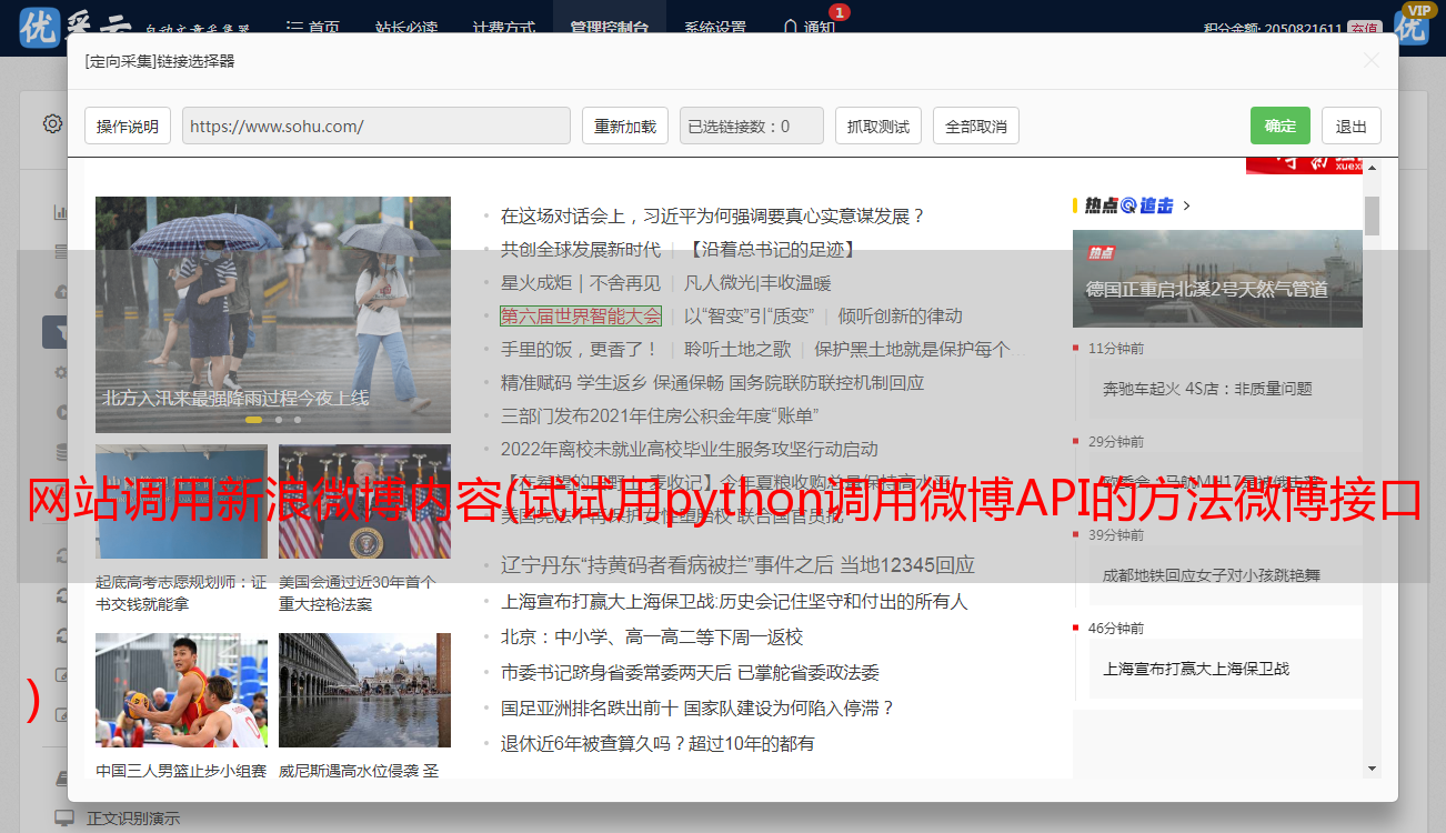 优采云 发布时间: 2022-03-13 00:11网站调用新浪微博内容(试试用python调用微博API的方法微博接口