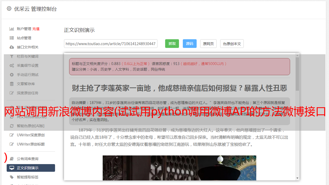 网站调用新浪微博内容(试试用python调用微博API的方法微博接口 )