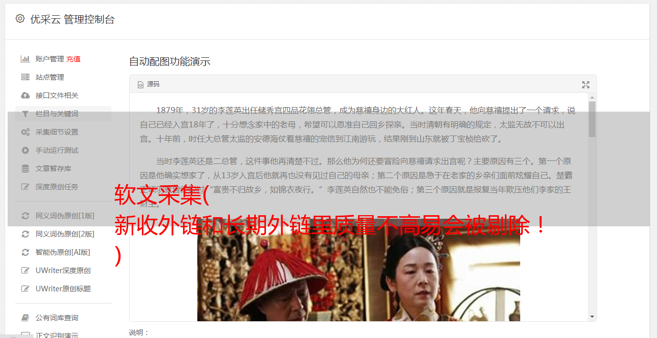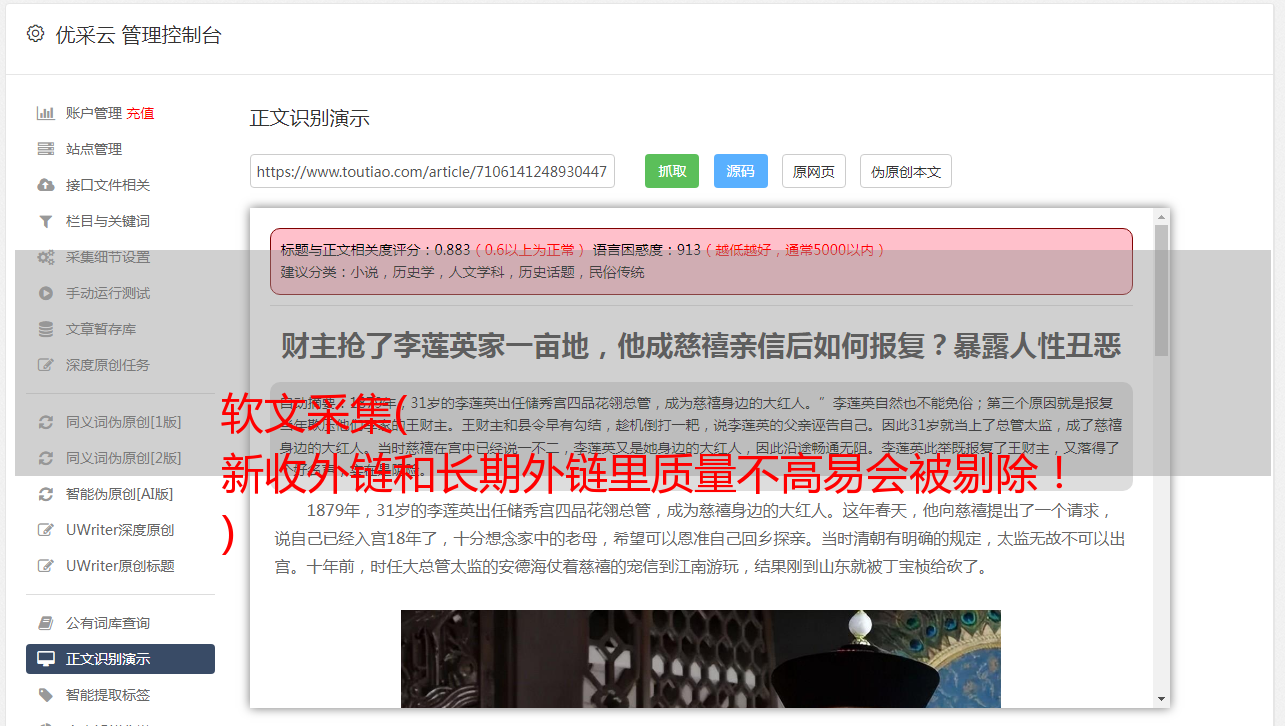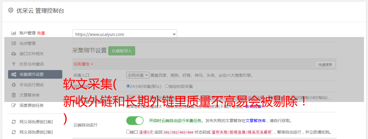 软文采集( 新收外链和长期外链里质量不高易会被剔除! )