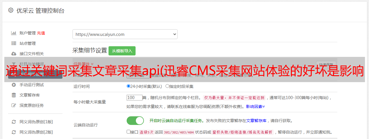 优采云 发布时间: 2022-03-13 06:18通过关键词采集文章采集api(迅睿CMS采集网站体验的好坏是影响网站最为关键因素