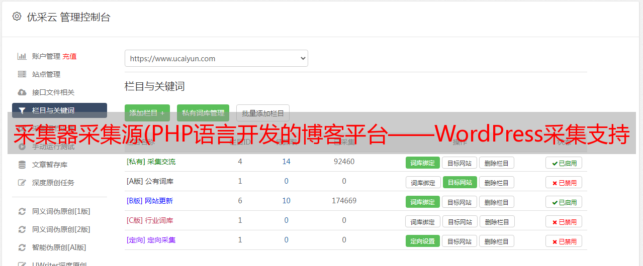 WordPress采集可以直接监控是否已发布待发布伪原创发布状态URL程序发布时间等。WordPress采集 让用户只需设置关键词 和相关要求,即可实现完全托管、零维护的网站 内容更新。WordPress采集无限网站WordPress的数量采集无论是单个网站还是站群,WordPress采集都可以很方便的管理.