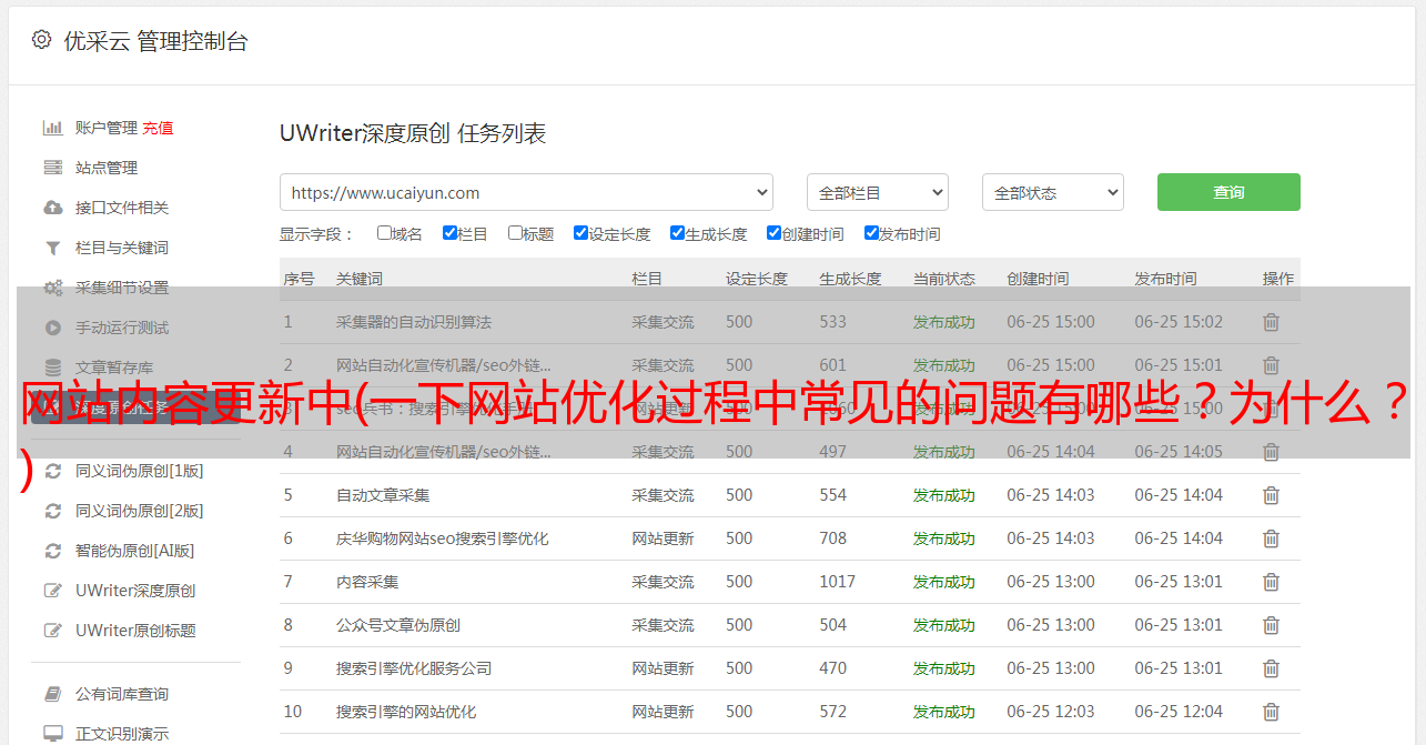 优采云 发布时间: 2022-03-13 15:16网站内容更新中(一下网站优化过程中常见的问题有哪些?为什么?
