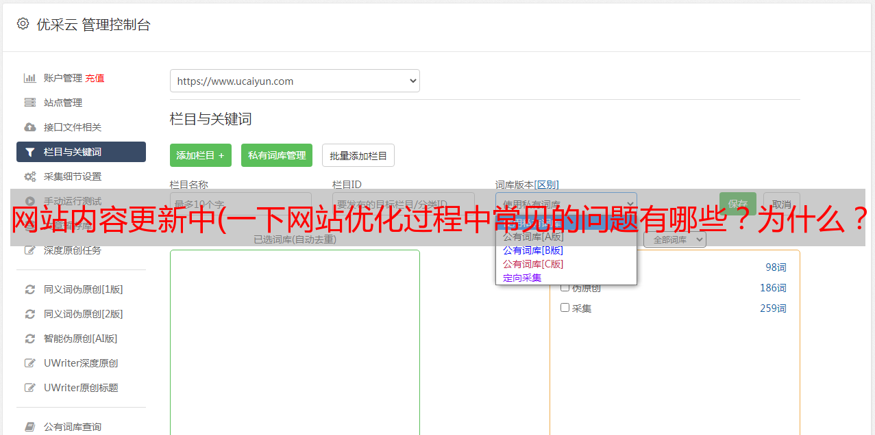 优采云 发布时间: 2022-03-13 15:18网站内容更新中(一下网站优化过程中常见的问题有哪些?为什么?