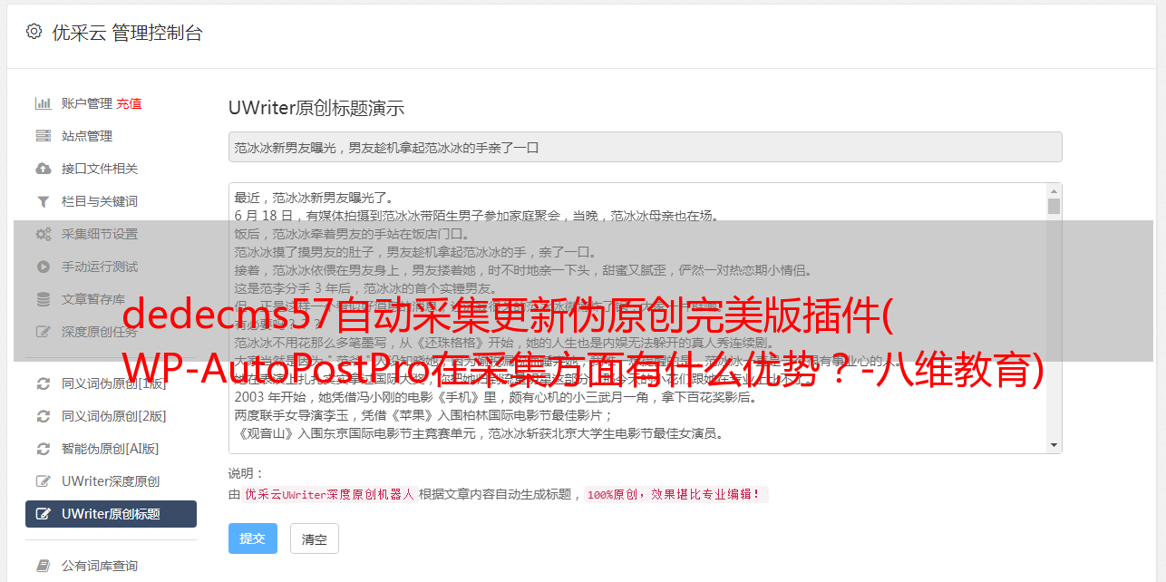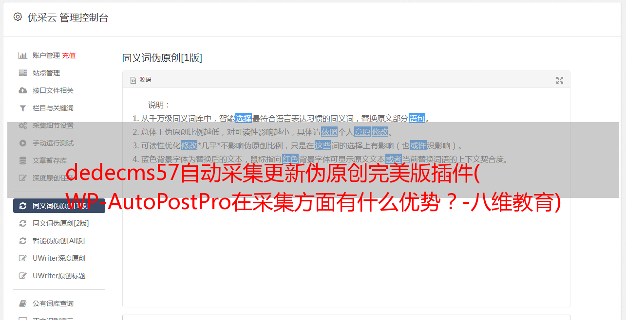 dedecms57自动采集更新伪原创完美版插件( WP-AutoPostPro在采集方面有什么优势?-八维教育)