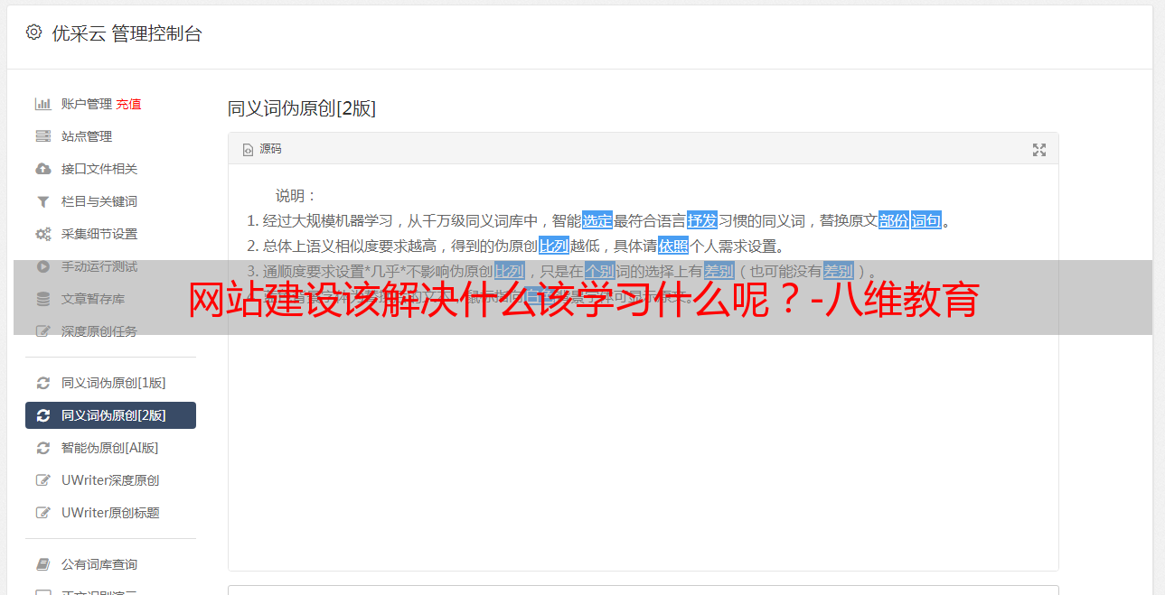 优采云 发布时间: 2021-05-09 19:02网站建设该解决什么该学习什么呢?-八维教育