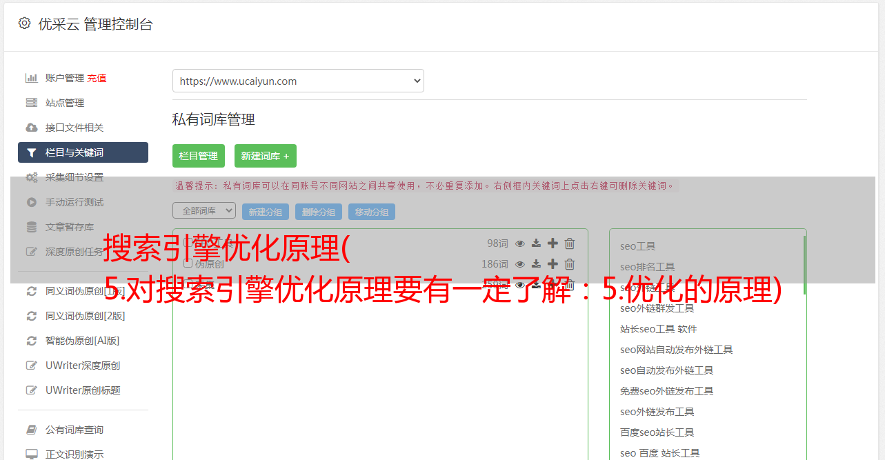 5.对搜索引擎优化原理要有一定了解:5.优化的原理)