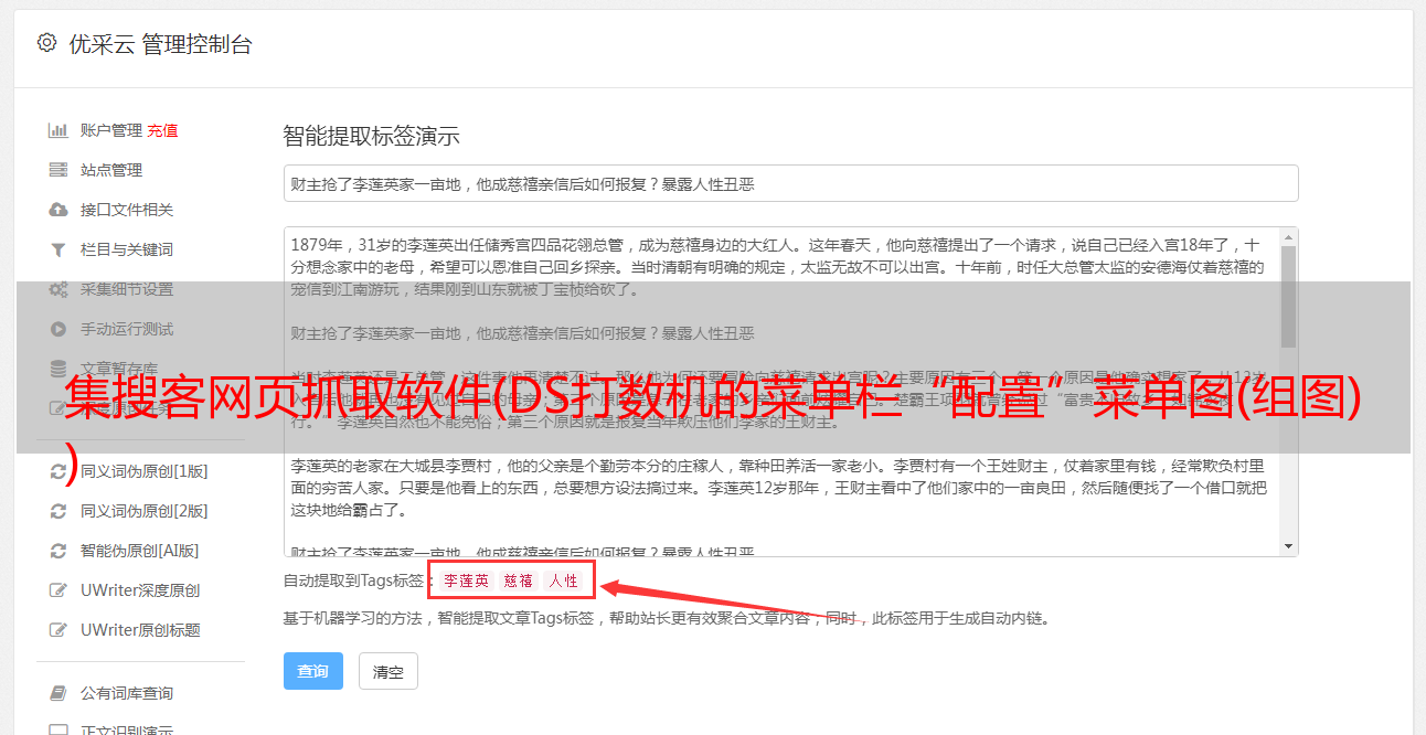 集搜客网页抓取软件(DS打数机的菜单栏“配置”菜单图(组图) )