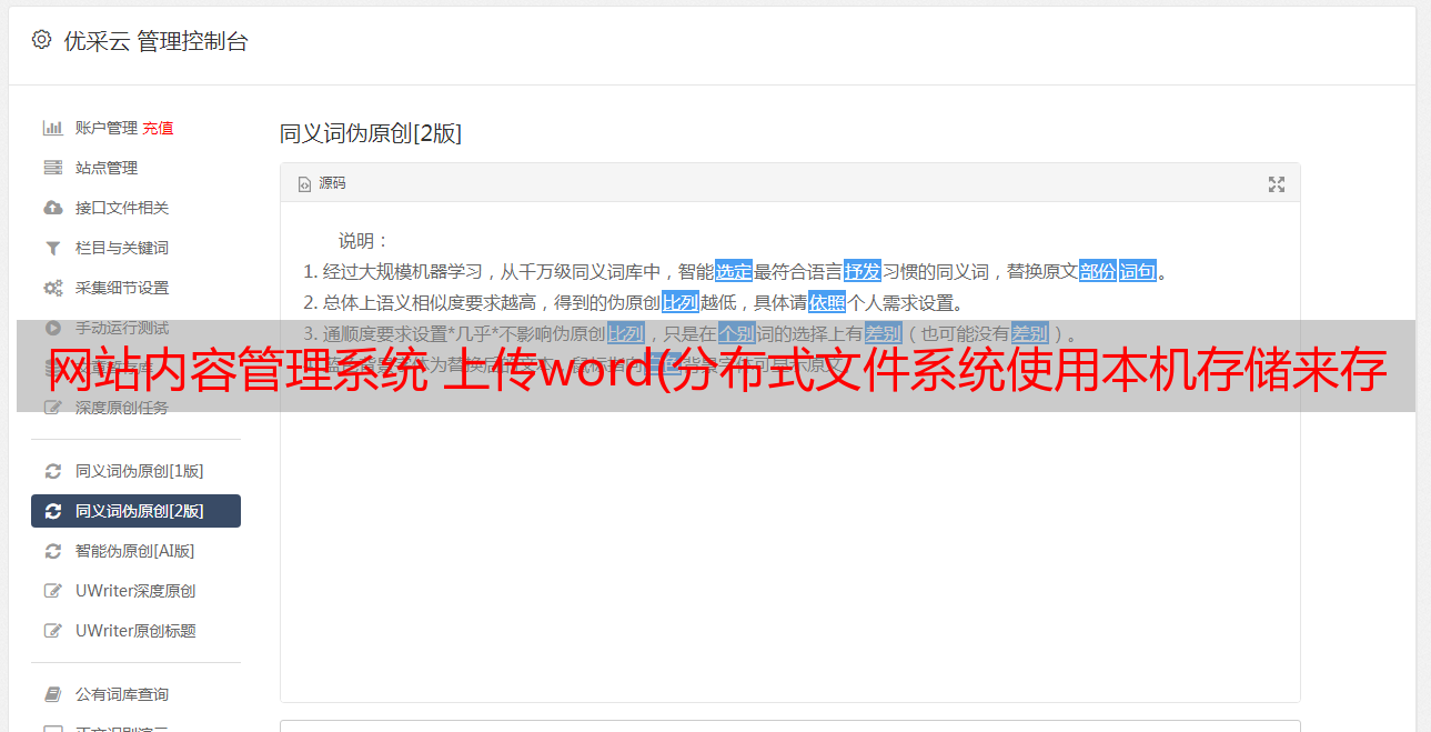 优采云 发布时间: 2022-03-14 21:17网站内容管理系统 上传word(分布式文件系统使用本机存储来存放文件资源的核心实现过程?