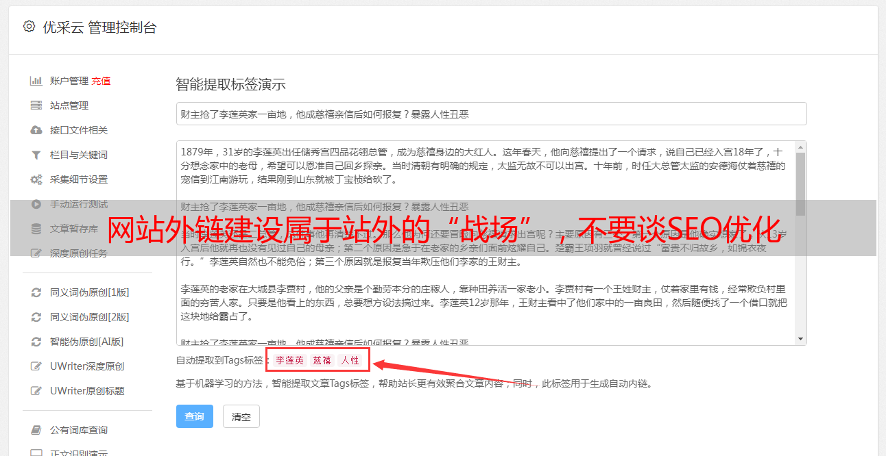 优采云 发布时间: 2021-05-09 23:12网站外链建设属于站外的“战场”,不要谈SEO优化