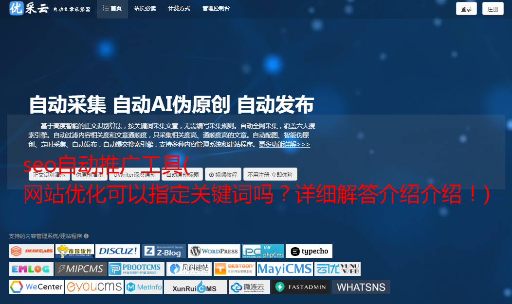 seo自动推广工具( 网站优化可以指定关键词吗?详细解答介绍介绍!)