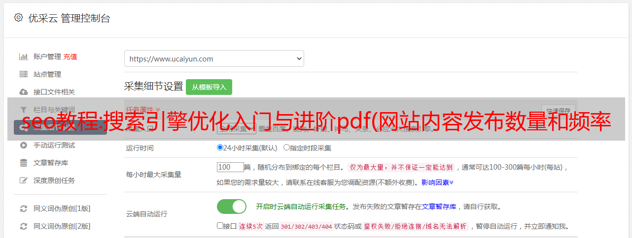 优采云 发布时间: 2022-03-15 20:13seo教程:搜索引擎优化入门与进阶pdf(网站内容发布数量和频率是SEO的重要技巧)