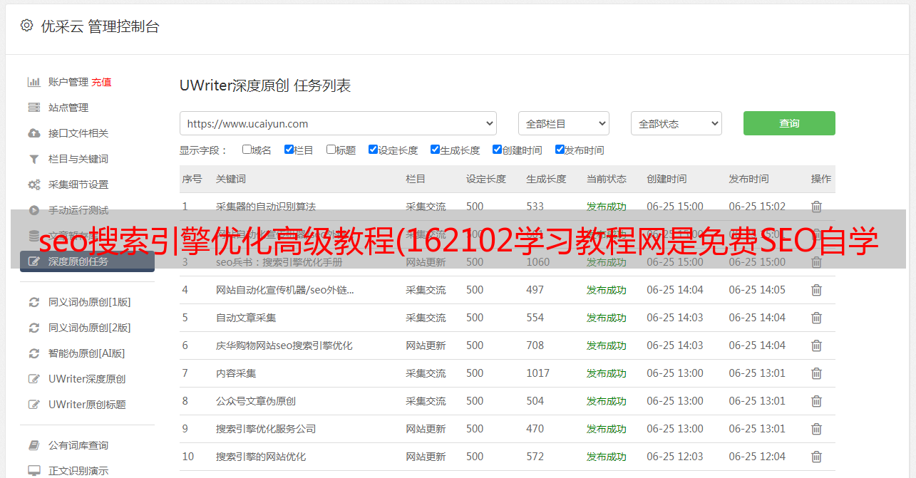 优采云 发布时间: 2022-03-15 23:13seo搜索引擎优化高级教程(162102学习教程网是免费SEO自学教程论坛,提供百度SEO优化教程)