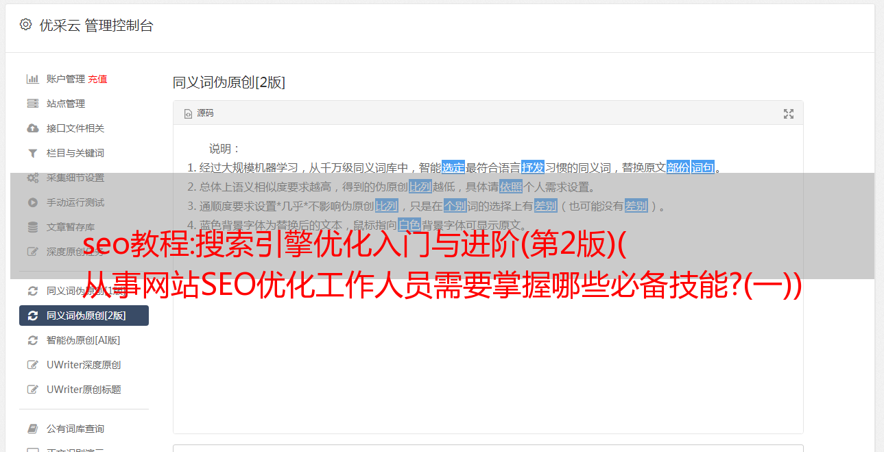 优采云 发布时间: 2022-03-16 06:21seo教程:搜索引擎优化入门与进阶(第2版)(