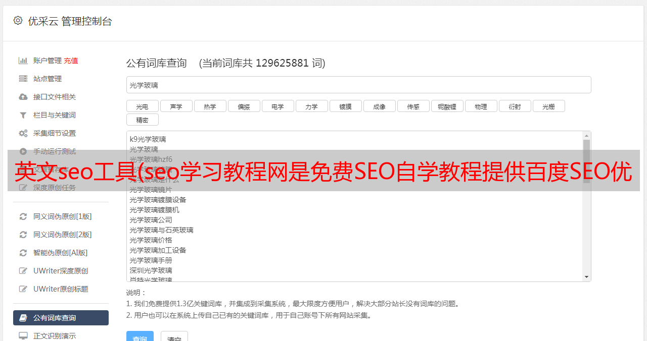 优采云 发布时间: 2022-03-16 08:16英文seo工具(seo学习教程网是免费SEO自学教程提供百度SEO优化)