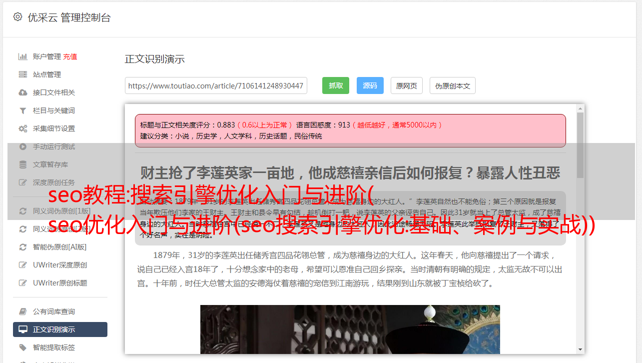 以下是seo教程:搜索引擎优化入门与进阶(seo搜索引擎优化:基础、案例与实践)详细解答介绍: