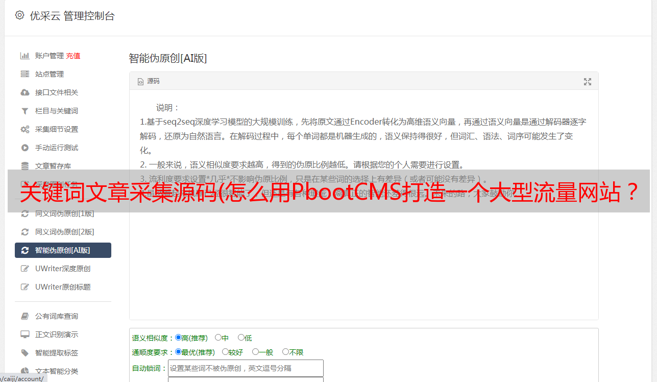 优采云 发布时间: 2022-03-16 11:23关键词文章采集源码(怎么用PbootCMS打造一个大型流量网站?大型网站的内容要如何构成