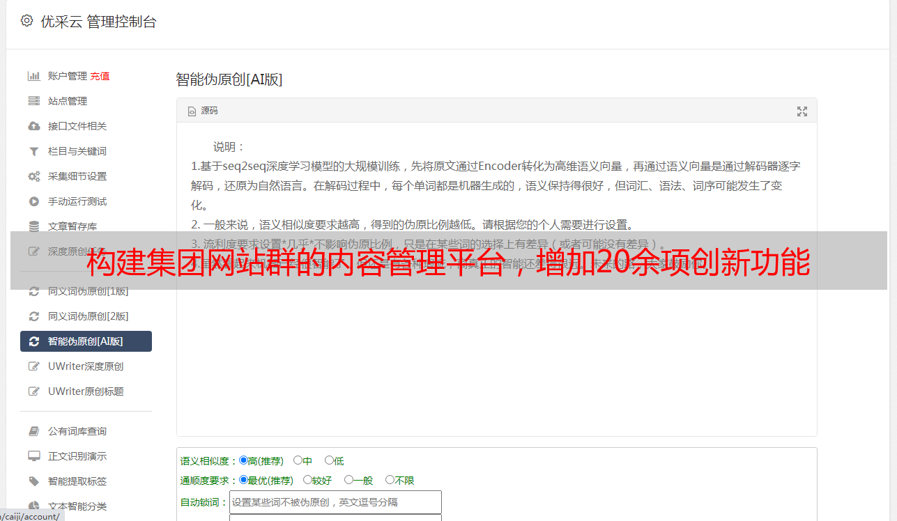 优采云 发布时间: 2021-05-10 03:04构建集团网站群的内容管理平台,增加20余项创新功能