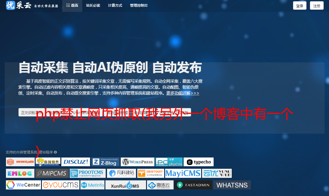 优采云 发布时间: 2022-03-16 12:25php禁止网页抓取(我另外一个博客中有一个