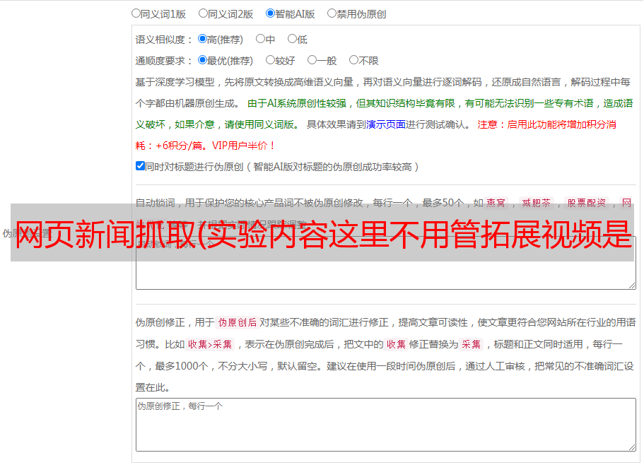 优采云 发布时间: 2022-03-16 15:18网页新闻抓取(实验内容这里不用管拓展视频是什么,视频涉及的内容很重要
