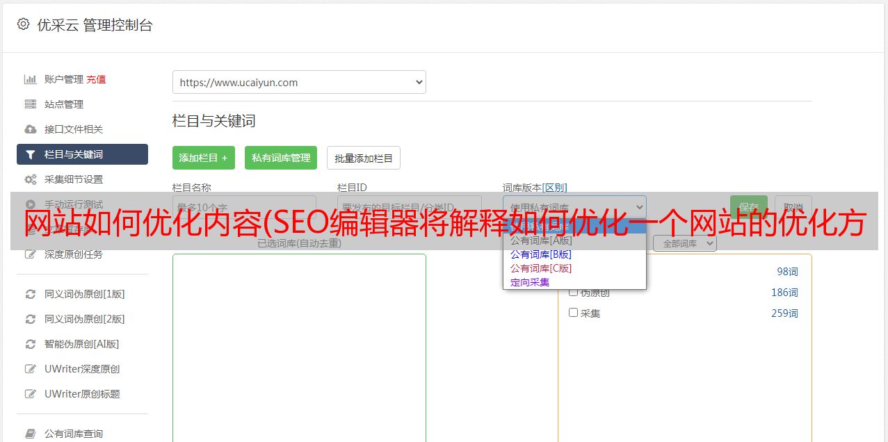 优采云 发布时间: 2022-03-16 15:28网站如何优化内容(SEO编辑器将解释如何优化一个网站的优化方法及方法)