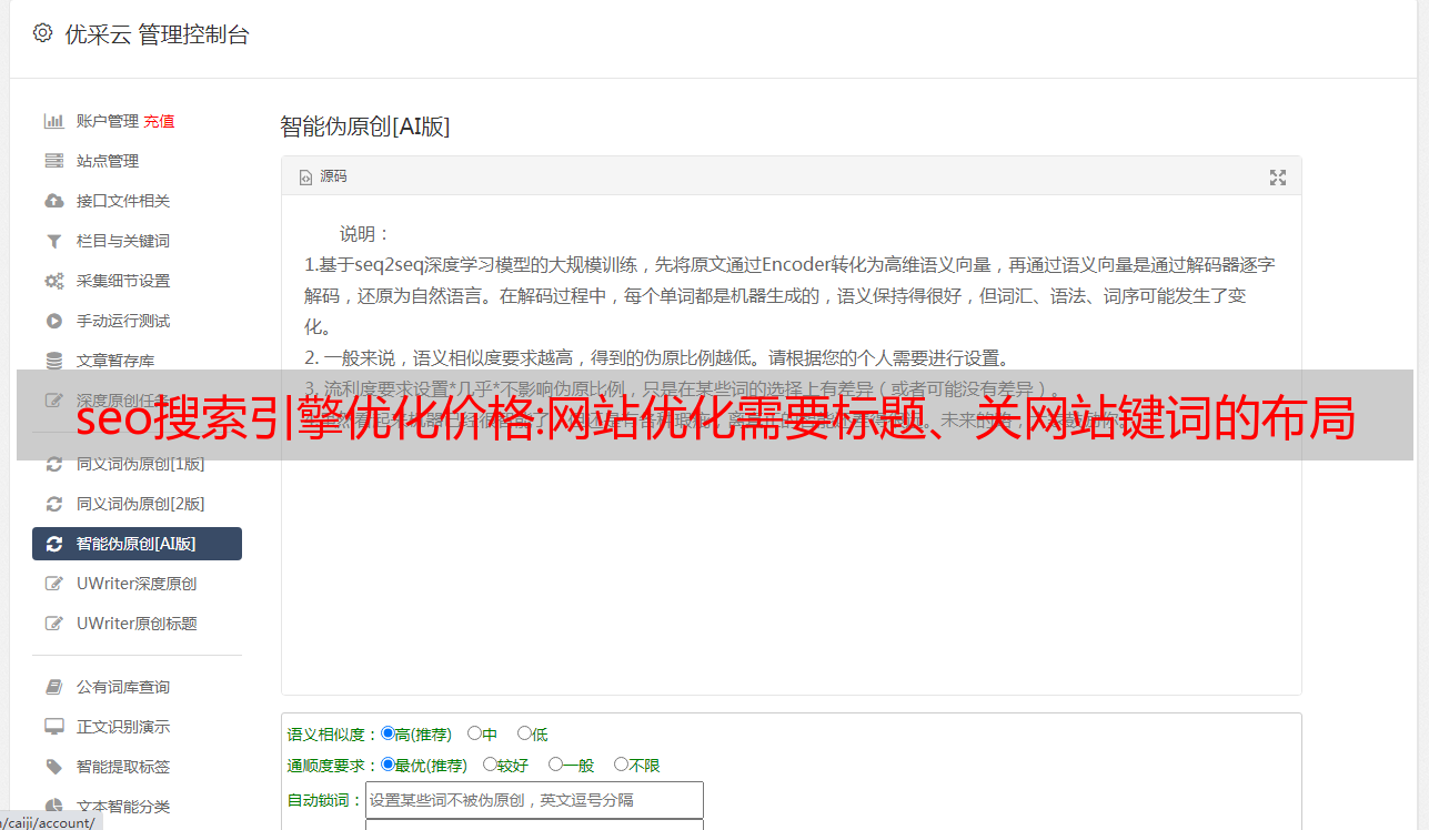 优采云 发布时间: 2021-05-10 03:27seo搜索引擎优化价格:网站优化需要标题、关网站键词的布局