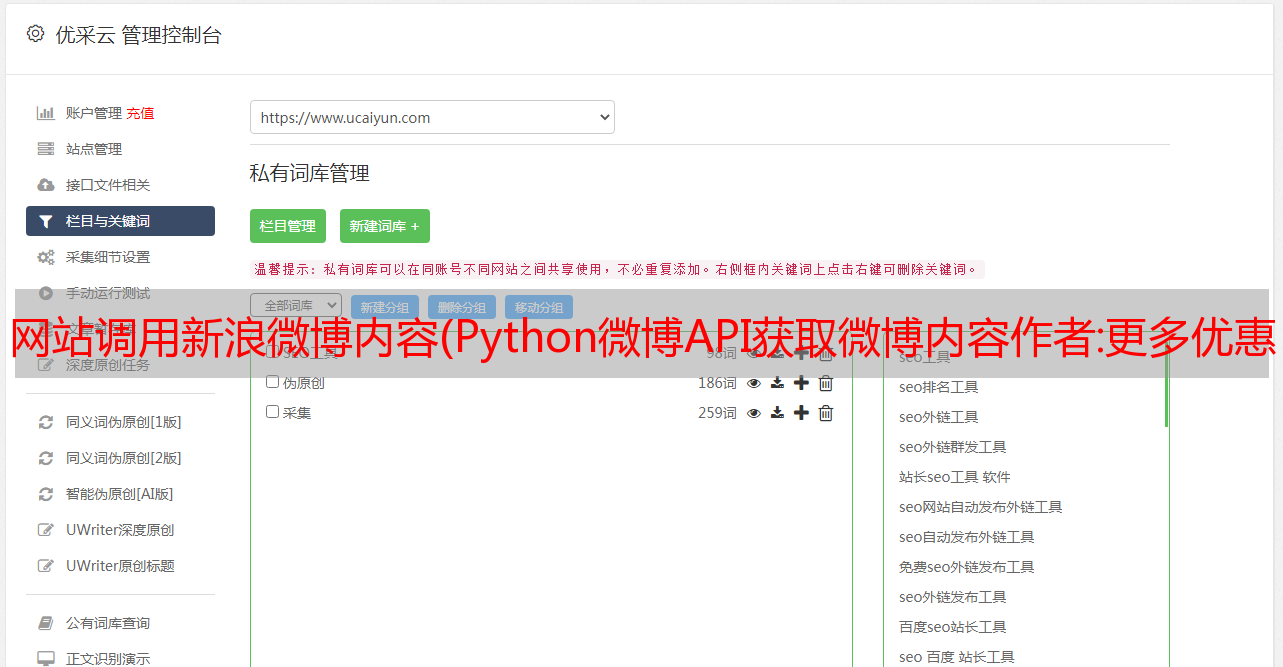 优采云 发布时间: 2022-03-16 20:11网站调用新浪微博内容(Python微博API获取微博内容作者:更多优惠gt(组图))