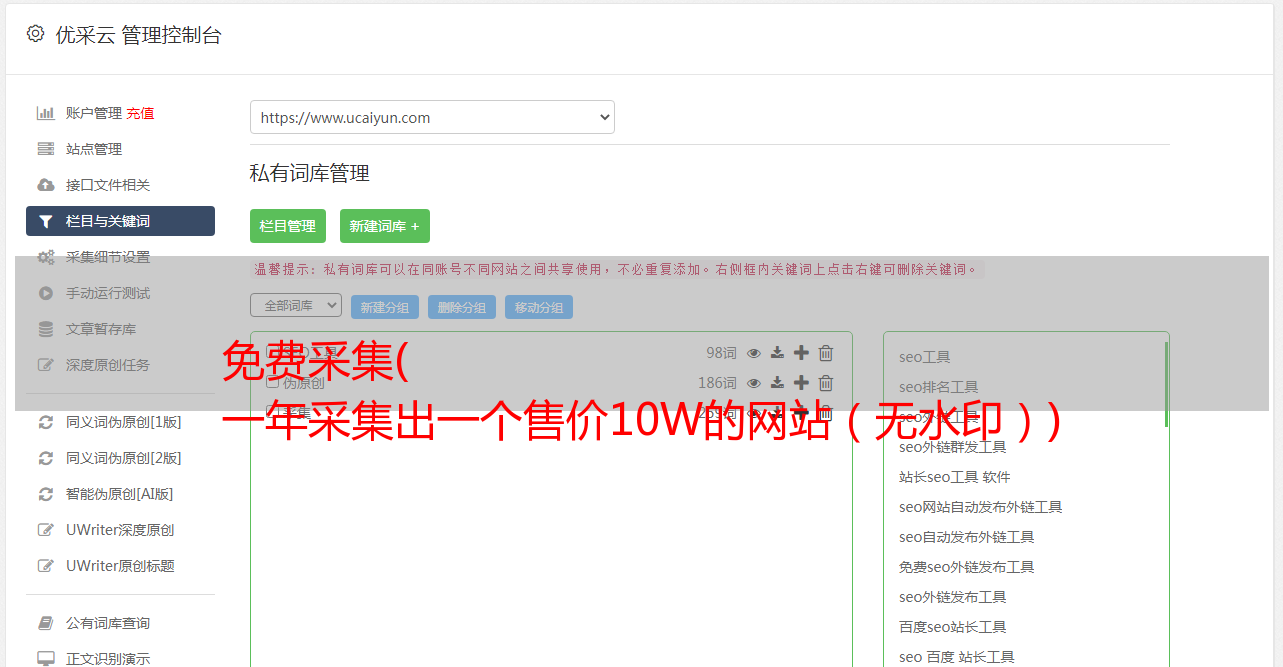 2、采集完成后会随着时间累积,网站的权重会一直增加。