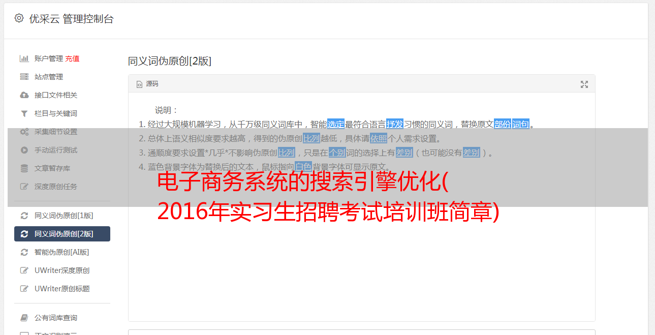 电子商务系统的搜索引擎优化( 2016年实习生招聘考试培训班简章)