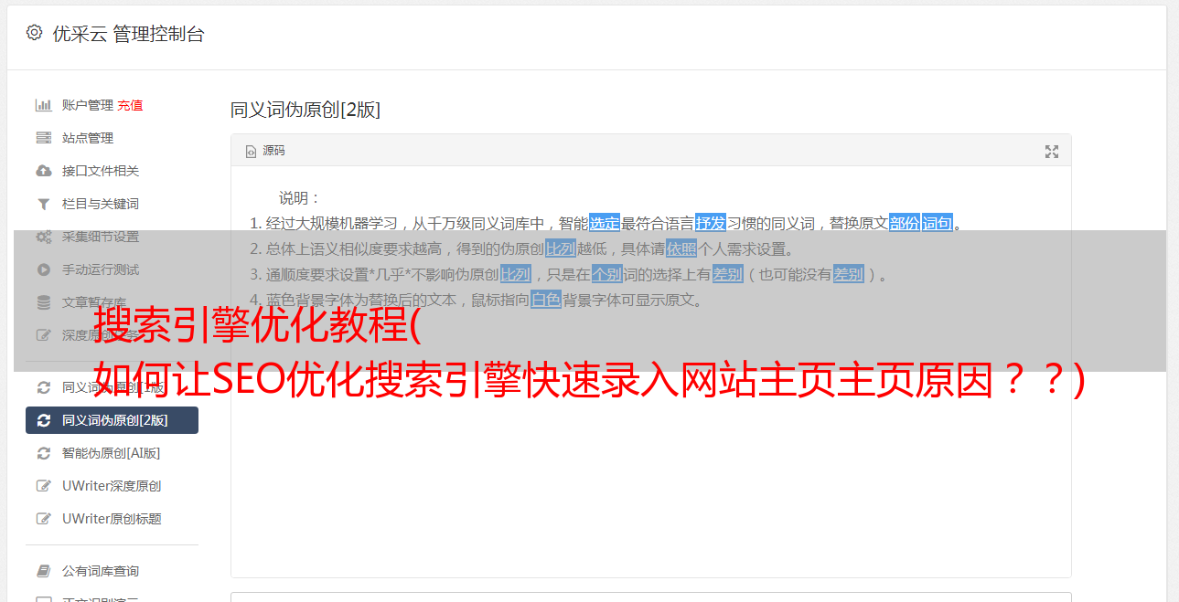 优采云 发布时间: 2022-03-17 21:00搜索引擎优化教程(