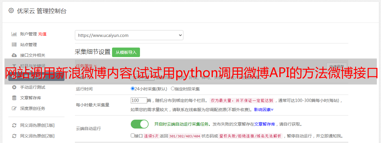 优采云 发布时间: 2022-03-18 01:05网站调用新浪微博内容(试试用python调用微博API的方法微博接口