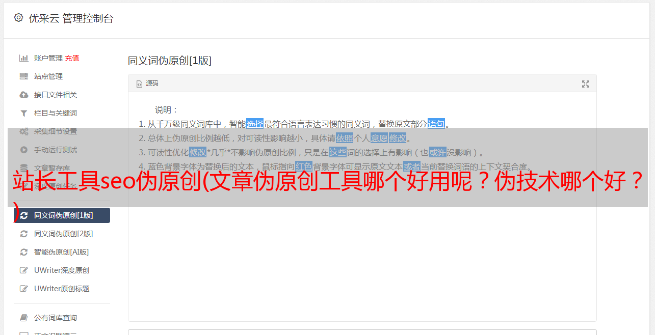 优采云 发布时间: 2022-03-18 01:20站长工具seo伪原创(文章伪原创工具哪个好用呢?伪技术哪个好?