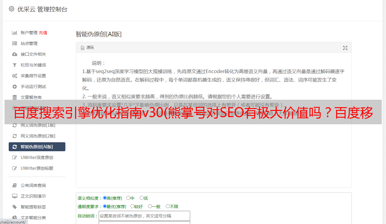 优采云 发布时间: 2022-03-18 02:18百度搜索引擎优化指南v30(熊掌号对SEO有极大价值吗?百度移动端的用户体验)