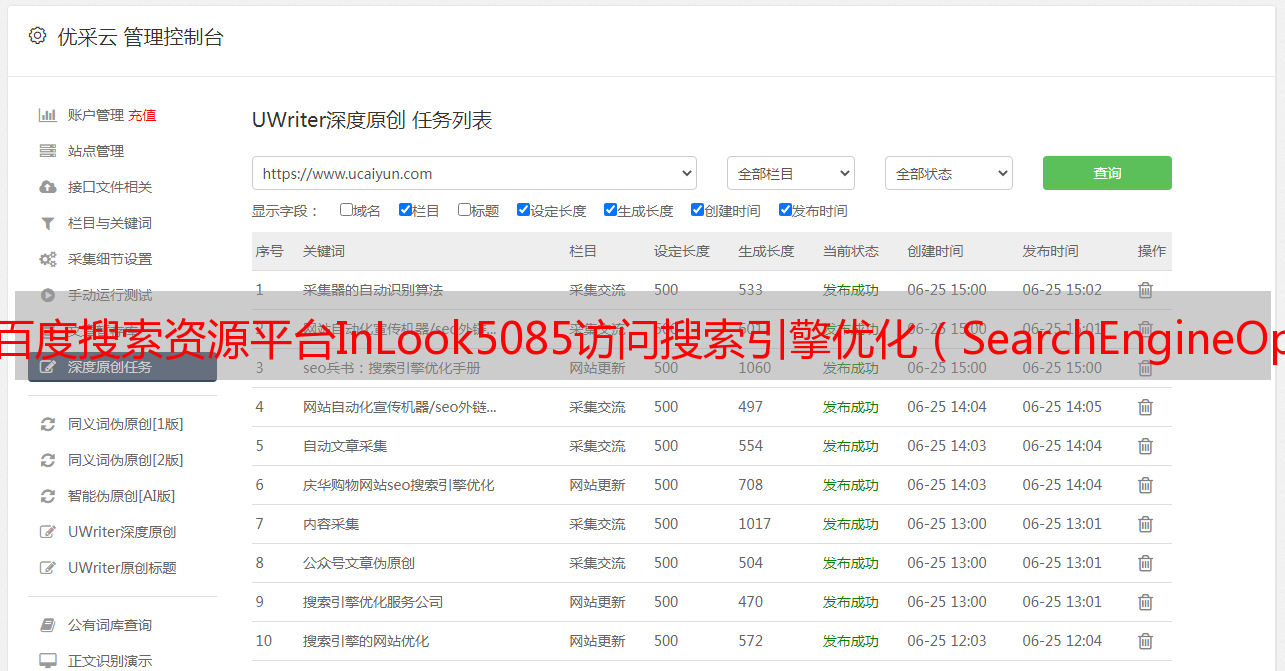 优采云 发布时间: 2021-05-10 18:13百度搜索资源平台InLook5085访问搜索引擎优化(SearchEngineOptimization)
