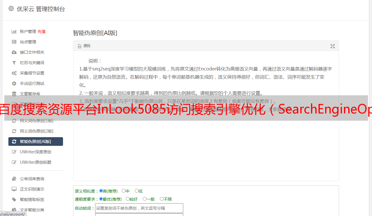 百度搜索资源平台InLook5085访问搜索引擎优化(SearchEngineOptimization)