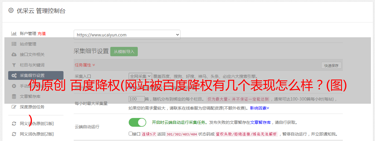 优采云 发布时间: 2022-03-18 07:08伪原创 百度降权(网站被百度降权有几个表现怎么样?(图)