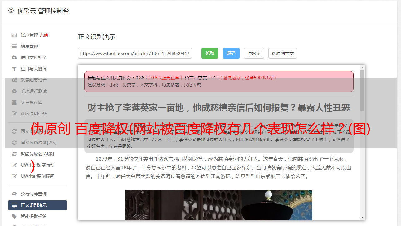 伪原创 百度降权(网站被百度降权有几个表现怎么样?(图) )