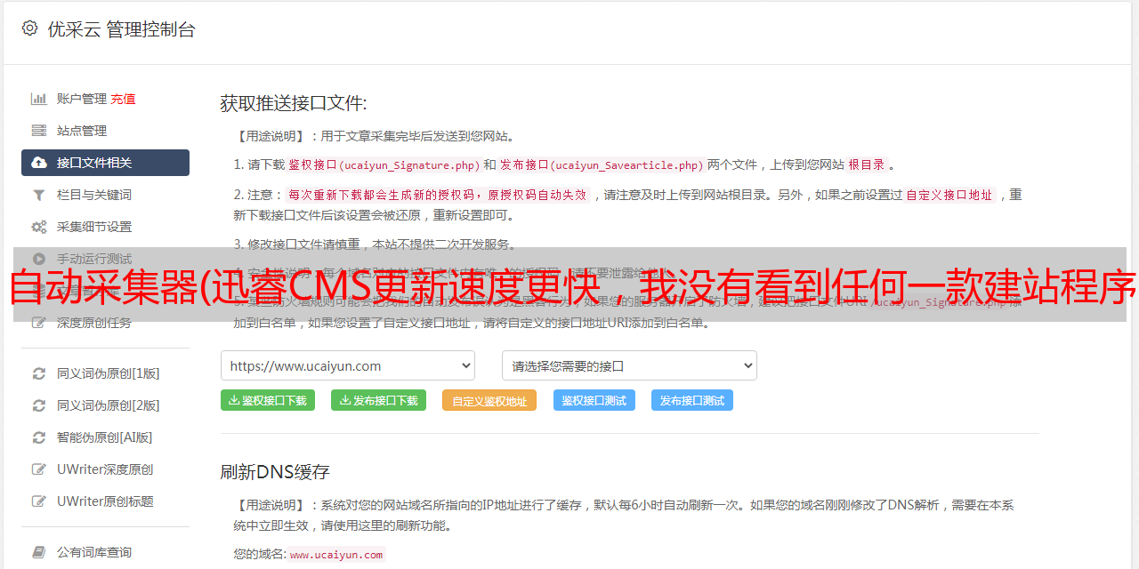 迅锐cms更新速度更快,至少我没见过比迅锐更新更快的建站工具,每次更新,迅锐都会补漏洞,提高安全性,迅锐和dedecms比较两个建站节目,我还是比较喜欢迅锐的。当然,如果你使用的是迅锐采集插件,则没有cms的区别,因为迅锐cms采集插件支持批量监控不同< @cms网站Data、迅瑞cms采集插件,你的网站是Empire、易友、ZBLOG、织梦、WP、小旋风、站群、PB、Apple、搜外等各大cms都支持,cms不需要太在意类型,用自己喜欢的cms@ > 。