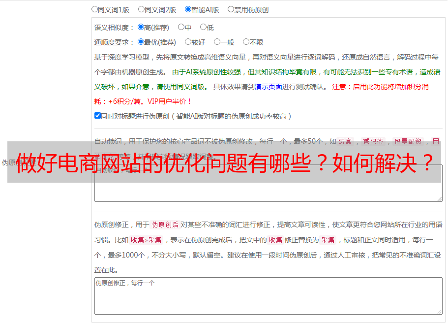 优采云 发布时间: 2021-05-10 19:09做好电商网站的优化问题有哪些?如何解决?