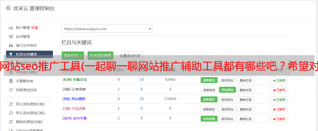 优采云 发布时间: 2022-03-18 12:11网站seo推广工具(一起聊一聊网站推广辅助工具都有哪些吧?希望对大家有所帮助