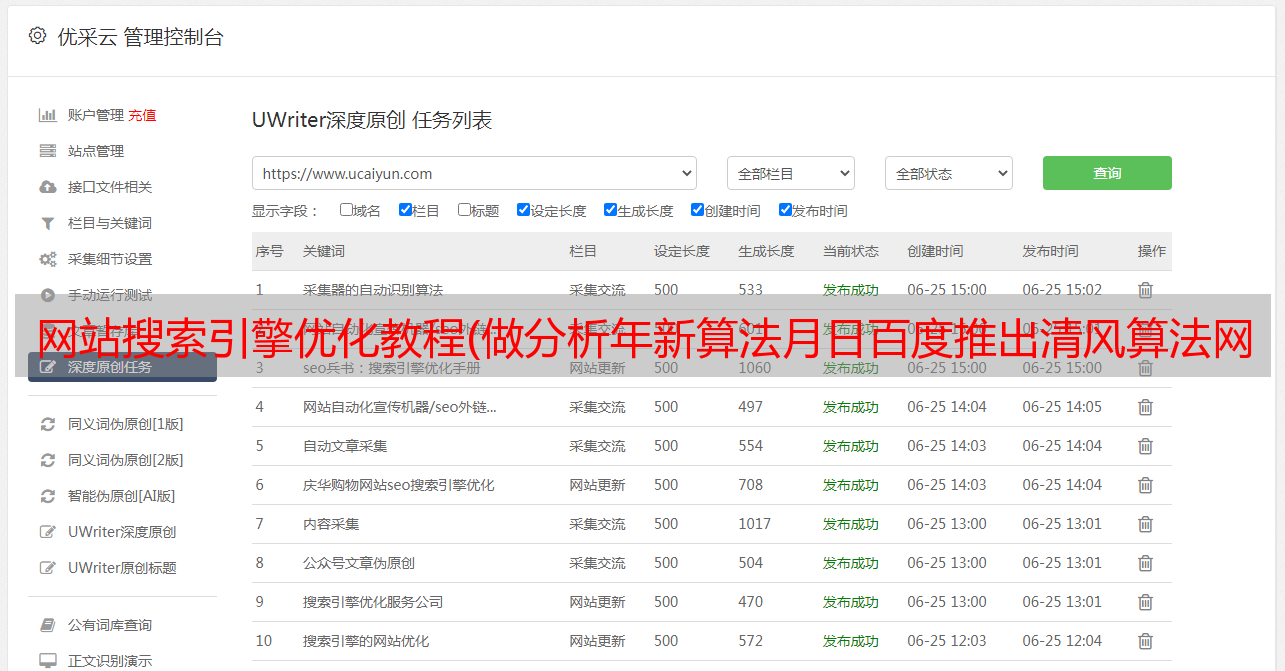 优采云 发布时间: 2022-03-18 13:13网站搜索引擎优化教程(做分析年新算法月日百度推出清风算法网站抓取频率是什么)