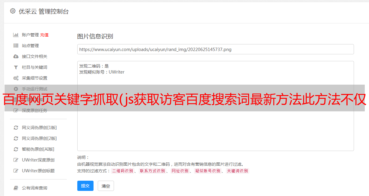 优采云 发布时间: 2022-03-18 13:31百度网页关键字抓取(js获取访客百度搜索词最新方法此方法不仅可以实时监控访客