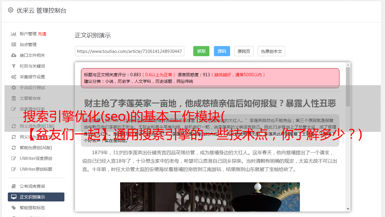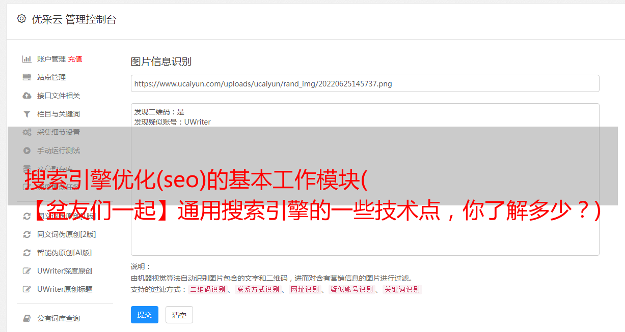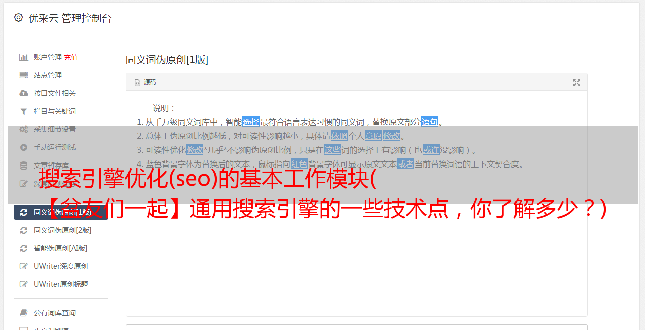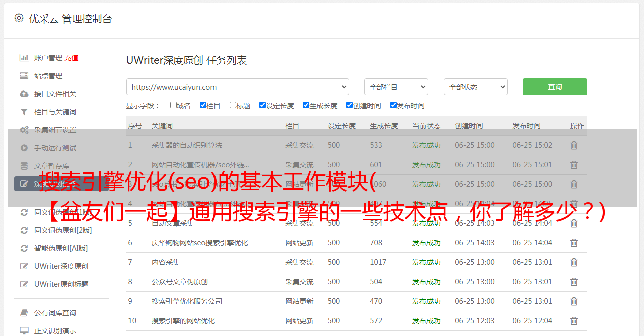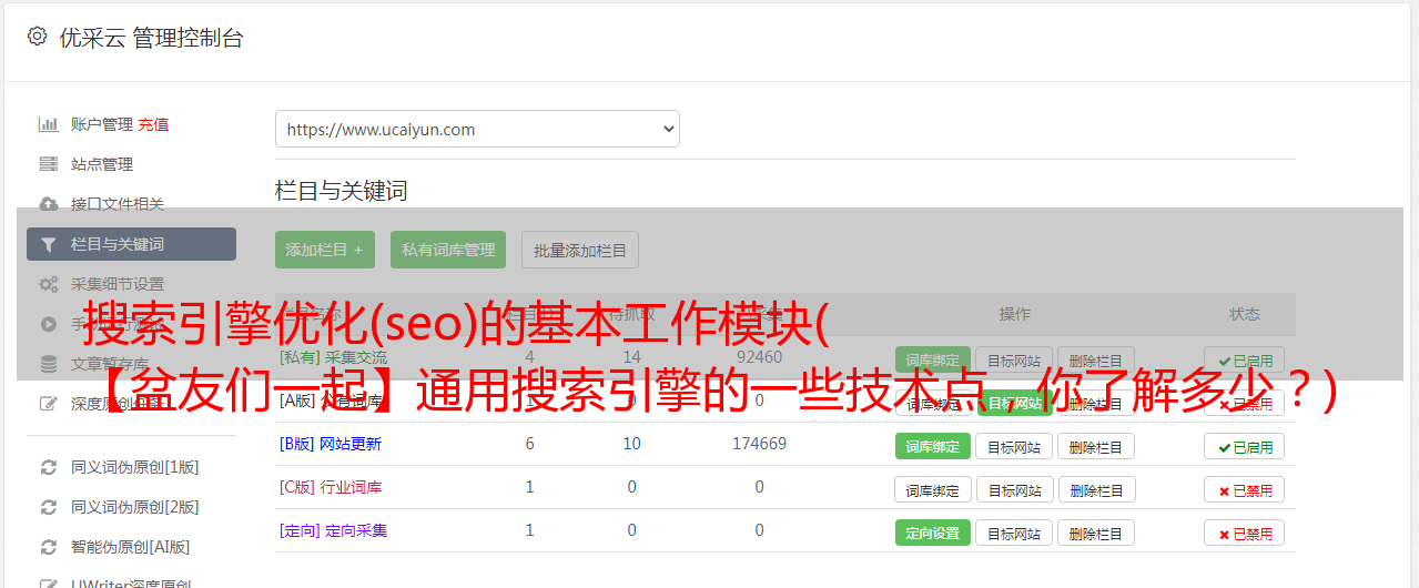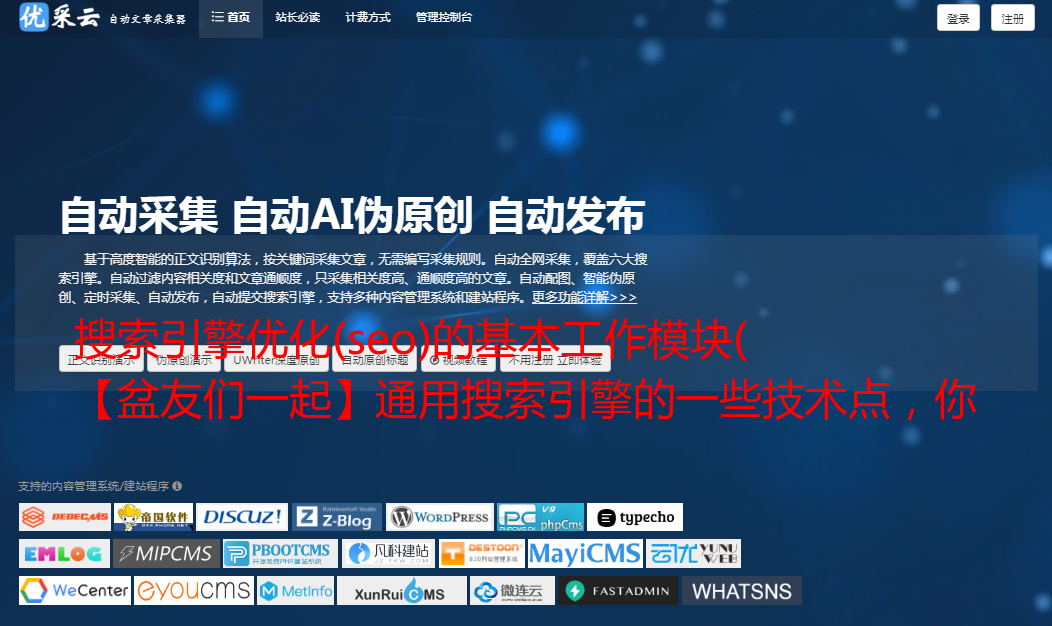 优采云 发布时间: 2022-03-18 14:21搜索引擎优化(seo)的基本工作模块(