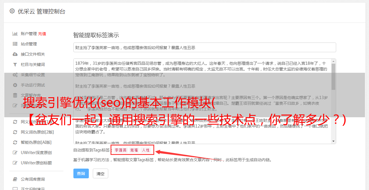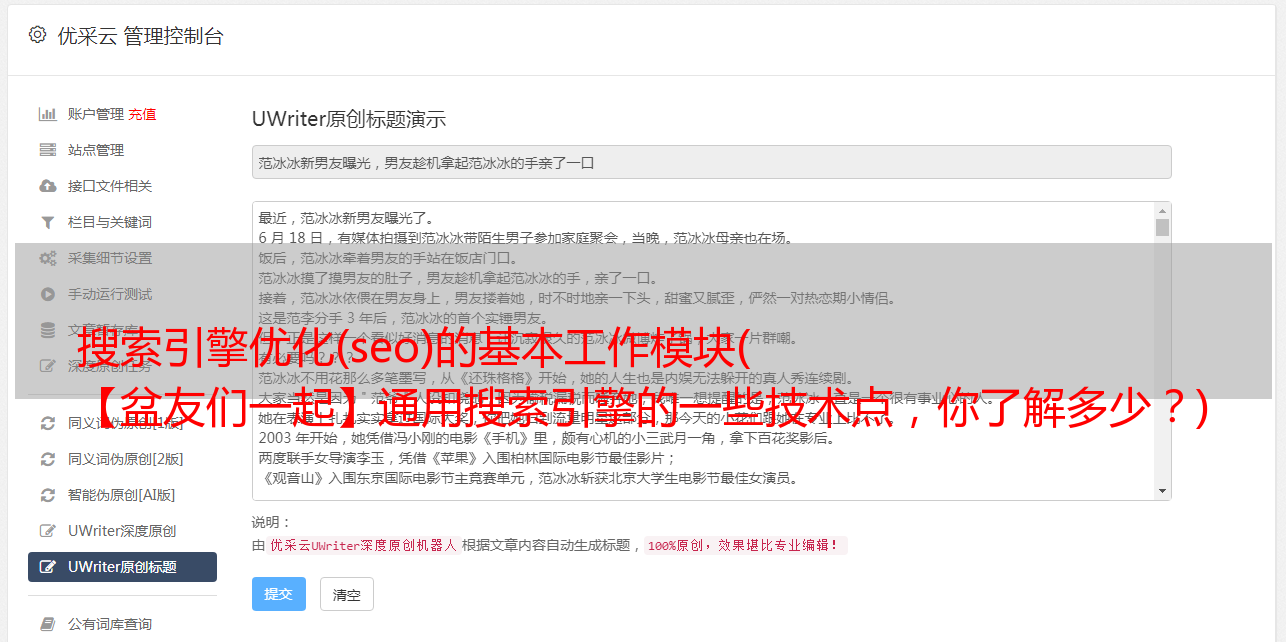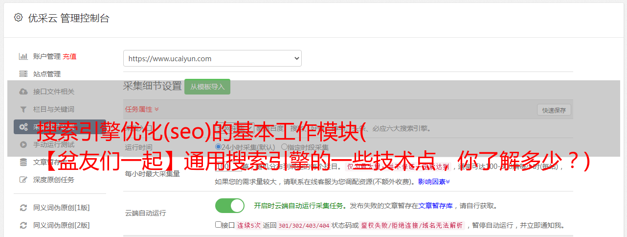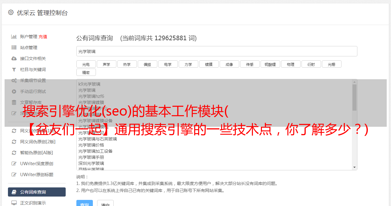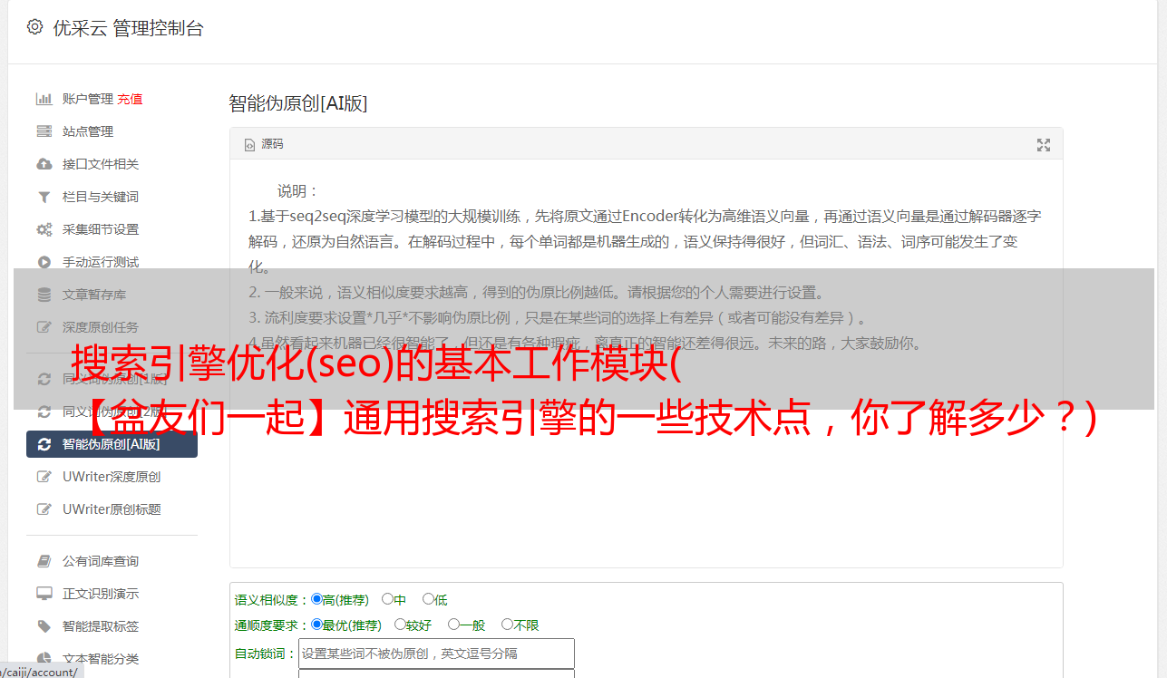 优采云 发布时间: 2022-03-18 14:21搜索引擎优化(seo)的基本工作模块(