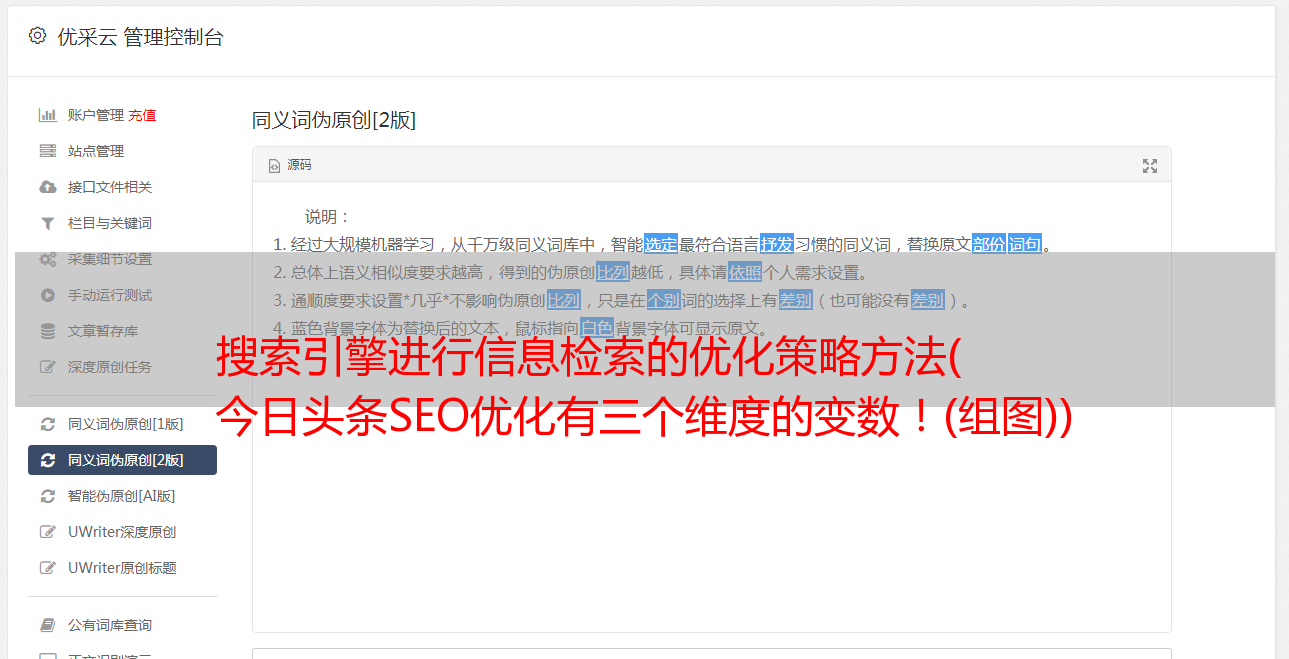 优采云 发布时间: 2022-03-18 17:13搜索引擎进行信息检索的优化策略方法(
