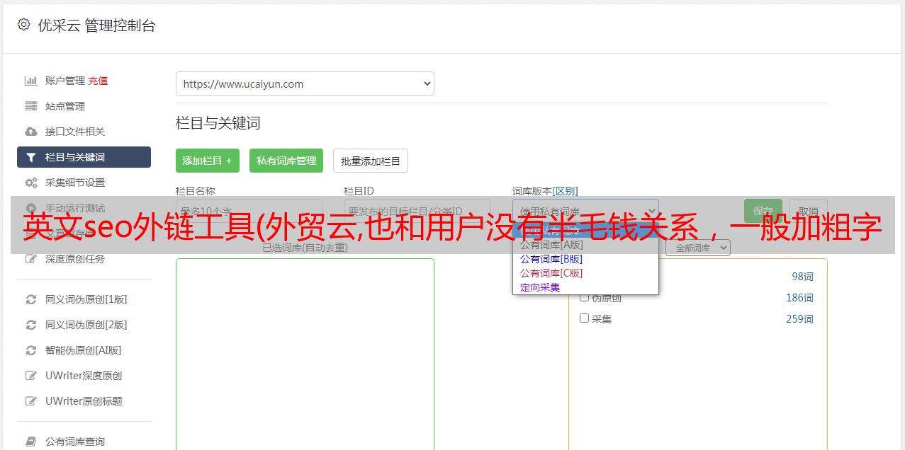 优采云 发布时间: 2022-03-18 21:21英文seo外链工具(外贸云,也和用户没有半毛钱关系,一般加粗字体)