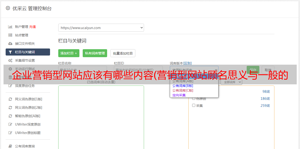 优采云 发布时间: 2022-03-18 22:07企业营销型网站应该有哪些内容(营销型网站顾名思义与一般的网站有所不同,兼顾了营销推广的功能)