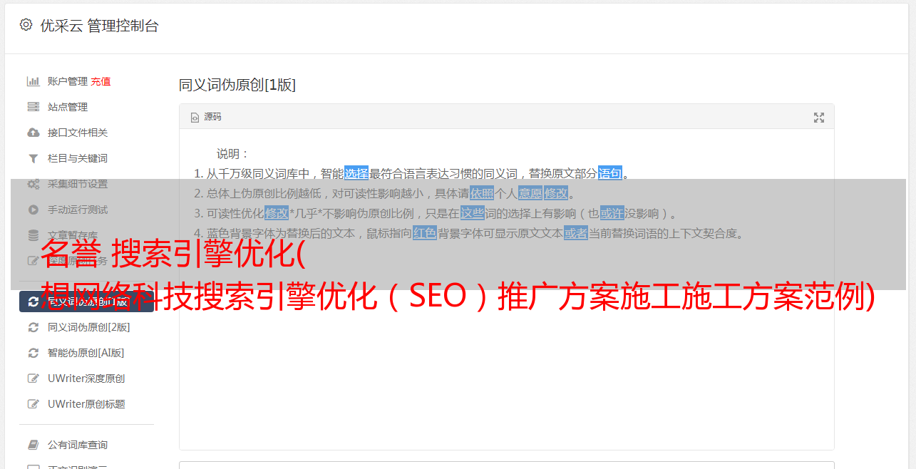 名誉 搜索引擎优化( 想网络科技搜索引擎优化(SEO)推广方案施工施工方案范例)