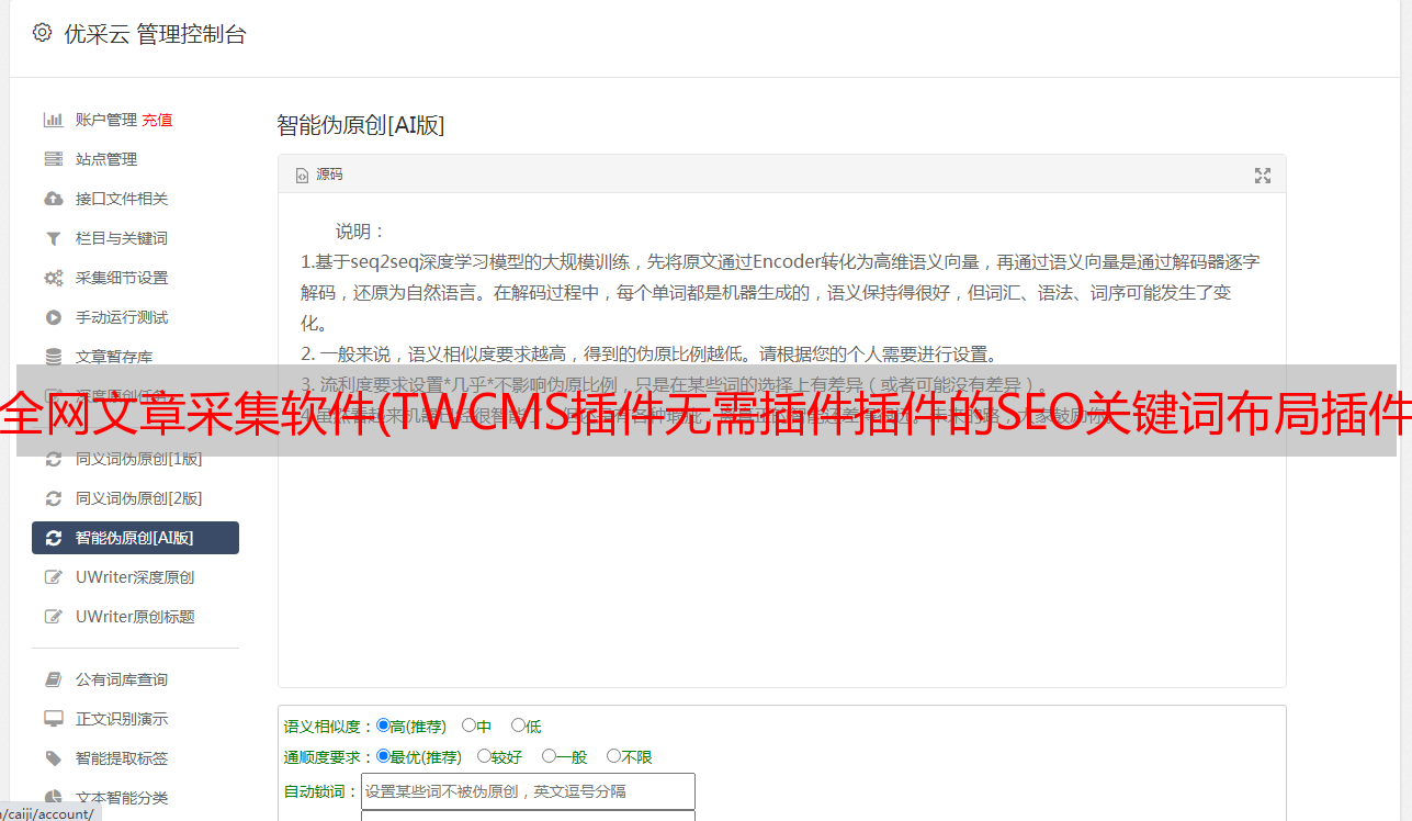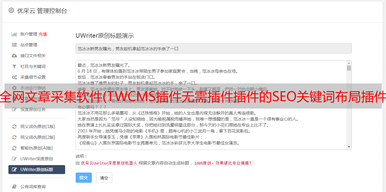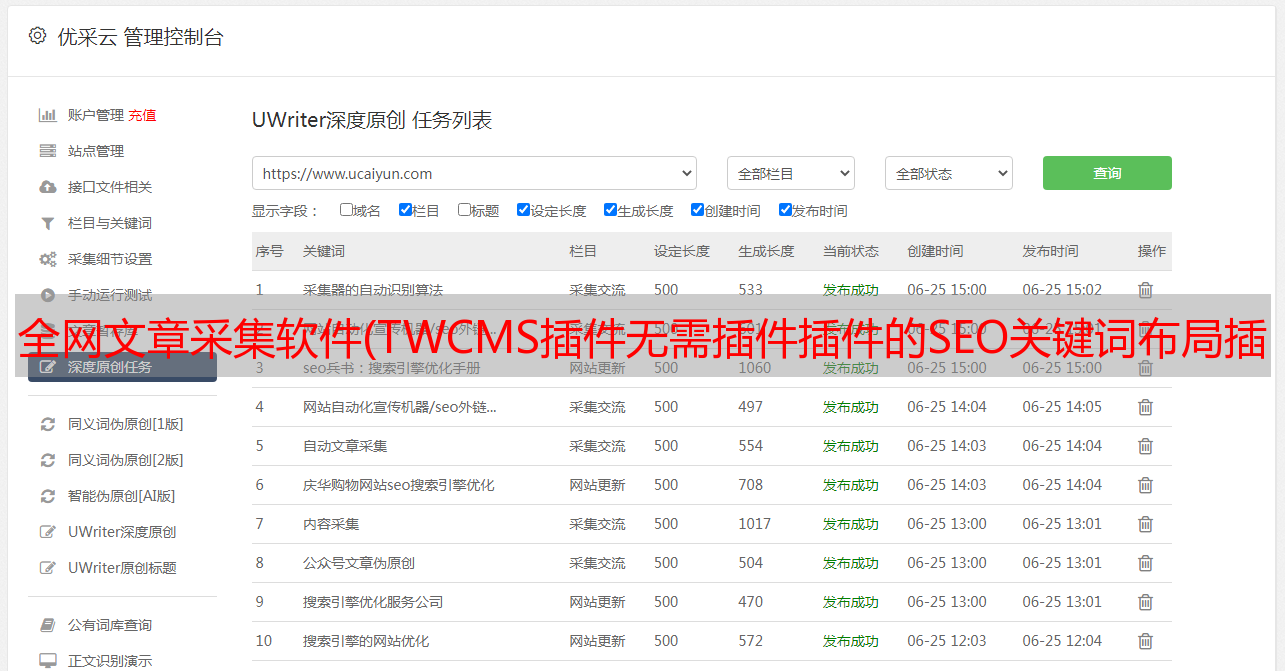 优采云 发布时间: 2022-03-18 23:25全网文章采集软件(TWCMS插件无需插件插件的SEO关键词布局插件