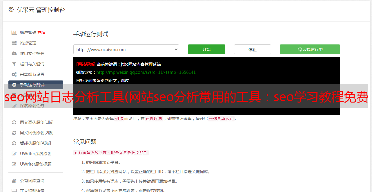 优采云 发布时间: 2022-03-18 23:33seo网站日志分析工具(网站seo分析常用的工具:seo学习教程免费SEO)