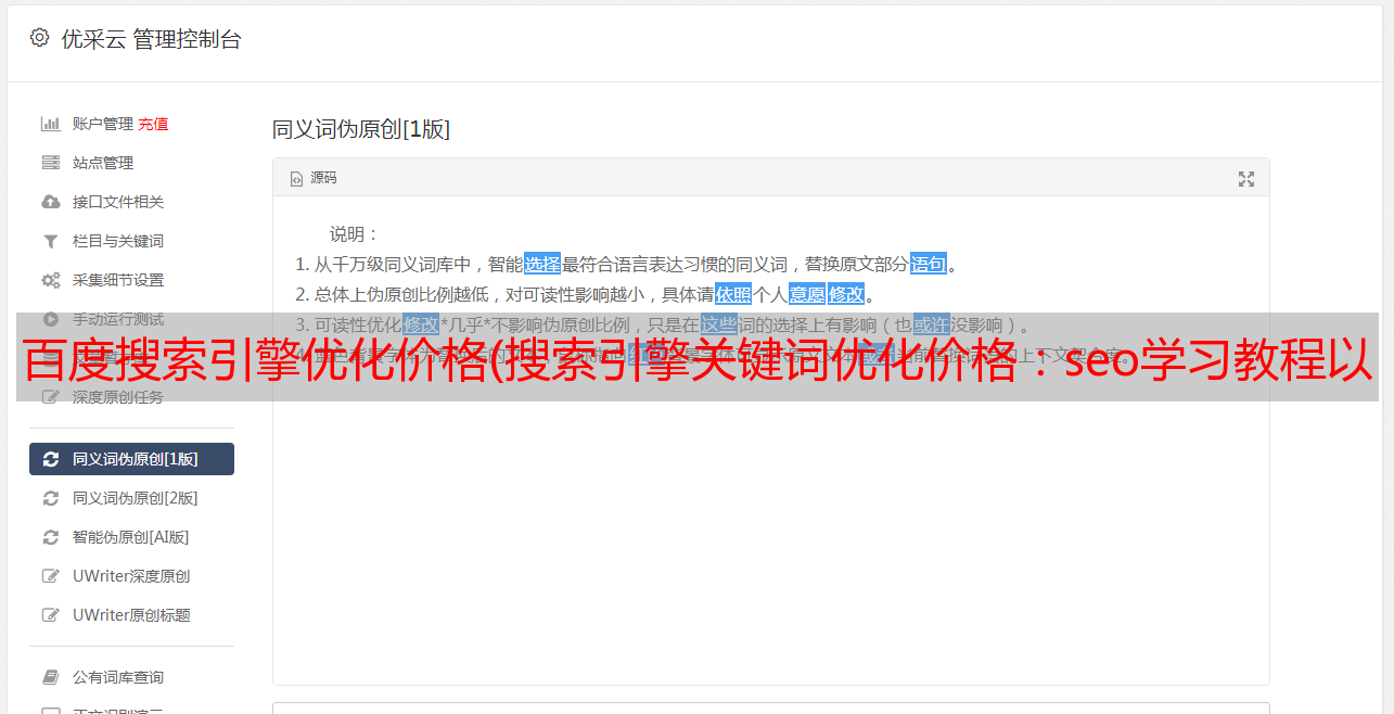 优采云 发布时间: 2022-03-19 00:14百度搜索引擎优化价格(搜索引擎关键词优化价格:seo学习教程以及免费的seo优化)